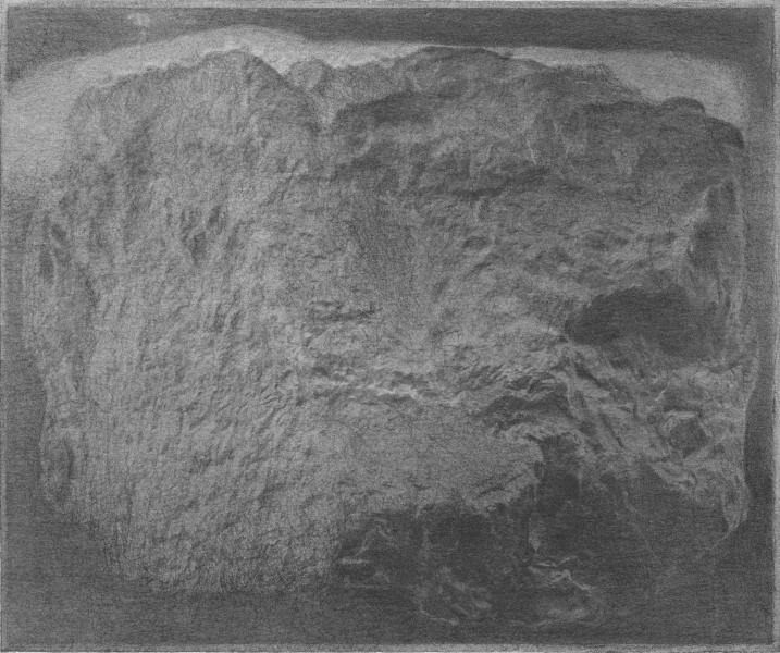 Dessin à  la mine de plomb sur canson montrant un rocher.