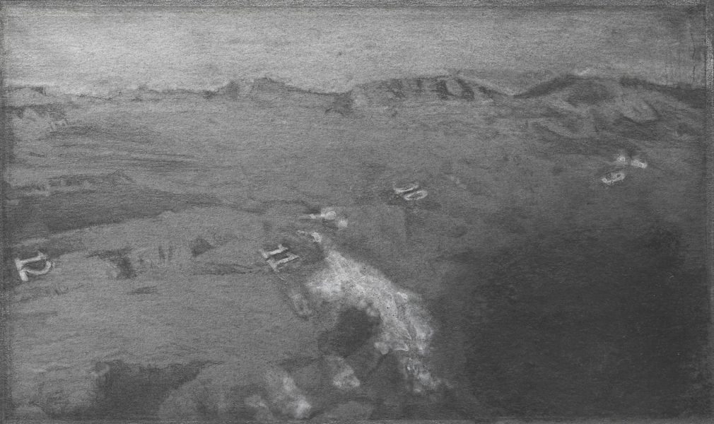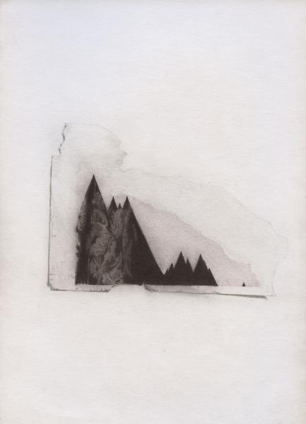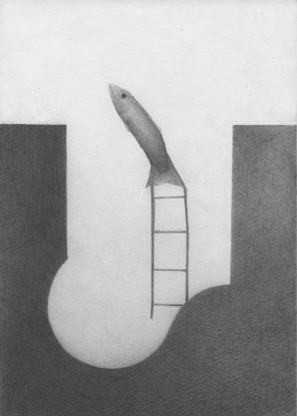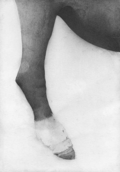 Sabot blanc de la patte arrière d\'un cheval gris fait à  la mine de plomb. dessin graphite collineavec nuage claire  dessin colline noir avec une cheminee Trou dans le calcaire glacier avec 4 nombres en chiffre Dirigeable horizontale dessin Dessin à  la mine de plomb d\'un tablier ou d\'une selle. Cagoule de plongé avec tuba. Bouée noire ronde avec une tête de cheval sur un socle. Poisson gris avec un œil noir sur une échelle dans un décor sombre en rondeur. Photo déchirée en diagonale avec des pointes noires comme des montagnes.